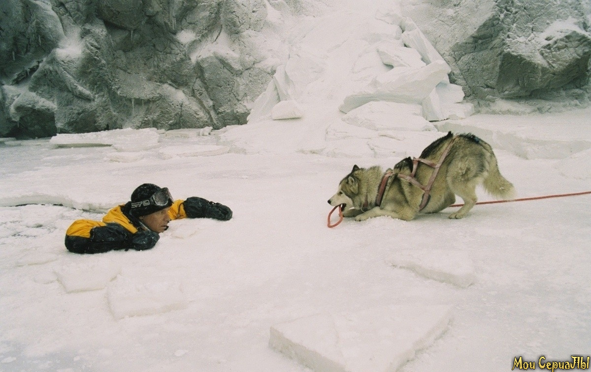 Однако неожиданное происшествие и тяжелые погодные условия вынуждают их оставить свои собачьи упряжки и вернуться назад. И теперь восемь собак должны в течение шести месяцев бороться за выживание в ледяной пустыне и ждать, пока их спасут…
