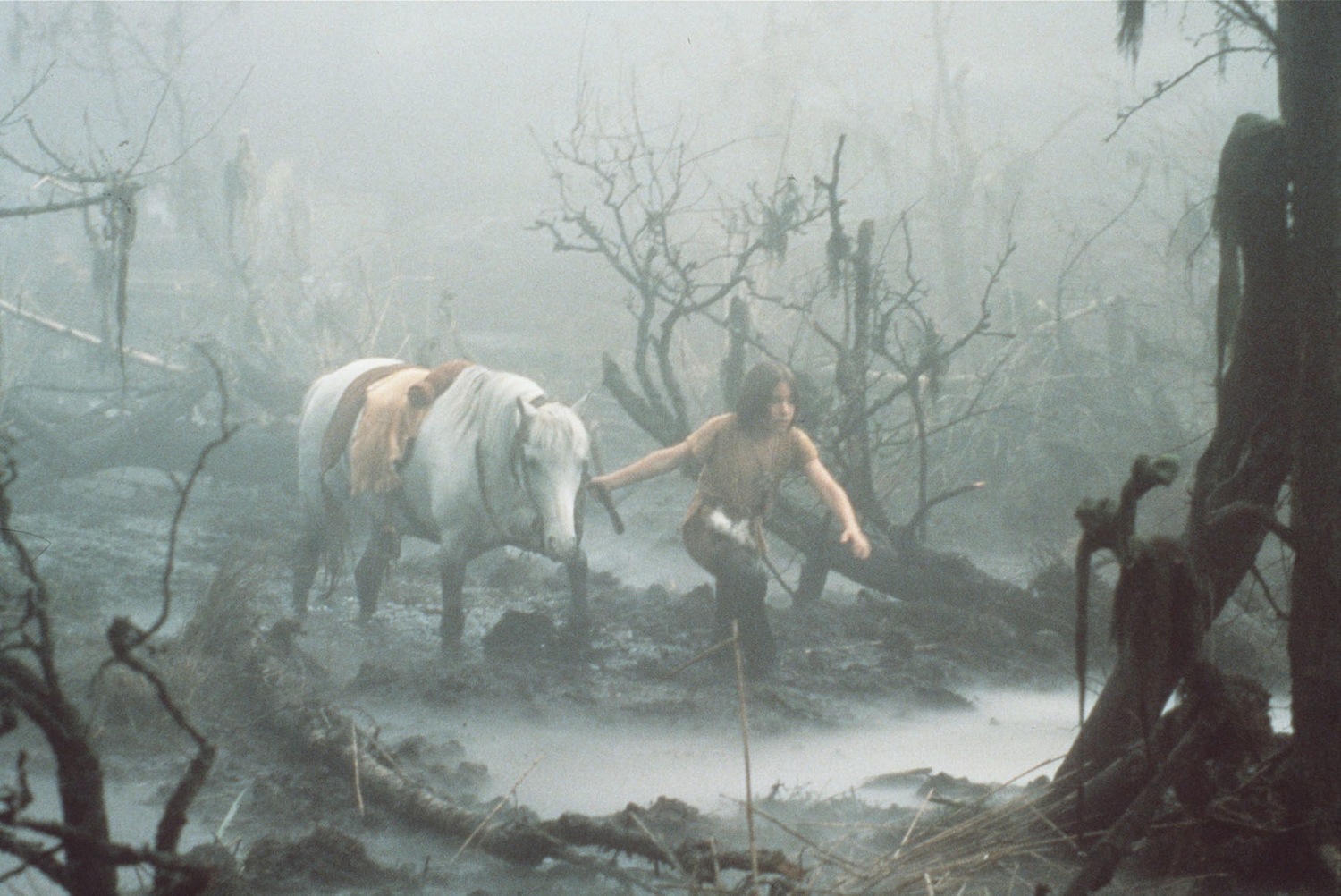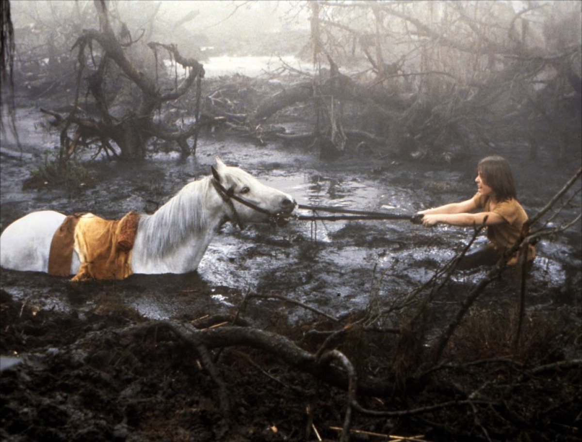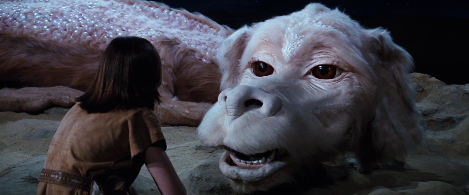 Убегая от школьных хулиганов, 10-летний Бастиан спрятался в старой книжной лавке, где нашел таинственную книгу, изукрашенную орнаментом. Открыв ее, Бастиан попал в призрачный фантастический мир бегающих улиток, летающих собак, бескрылых Драконов Удачи, проказливых эльфов и ходячей каменоломни по имени Камнекус.