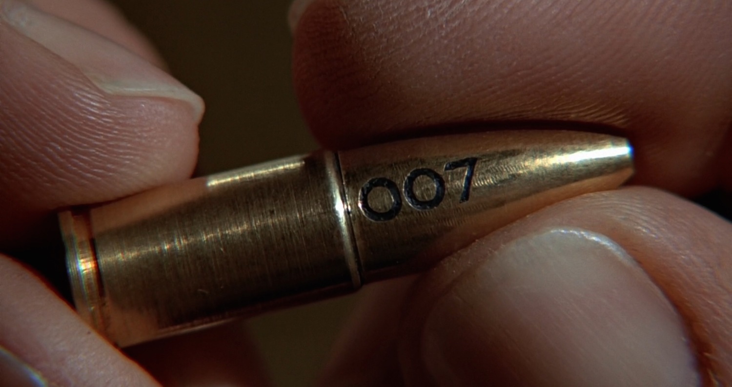 Для этого он отправляется на поиски любовницы агента 002, которого убил Скараманга на её глазах. У неё он забирает золотую пулю и относит её в лабораторию Q, где выясняется, что пулю изготовил известный оружейный мастер, который делает оружие на заказ и живёт в Макао. Бонд допрашивает его, но тот тоже не видел лица Скараманги и знает о нём очень мало.