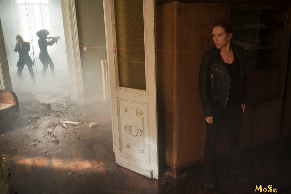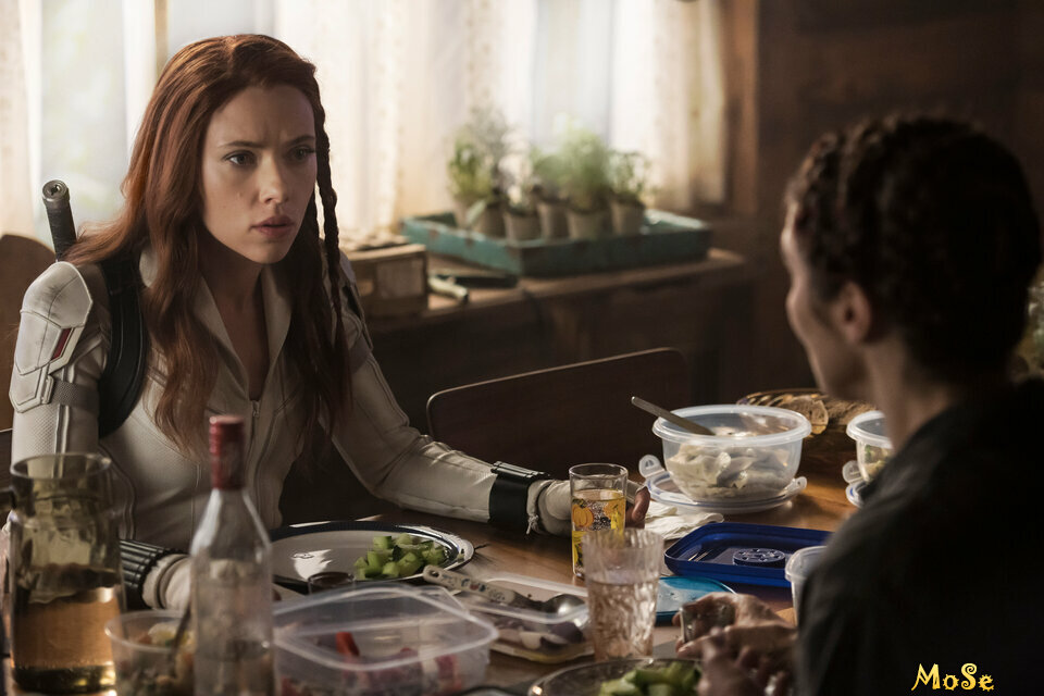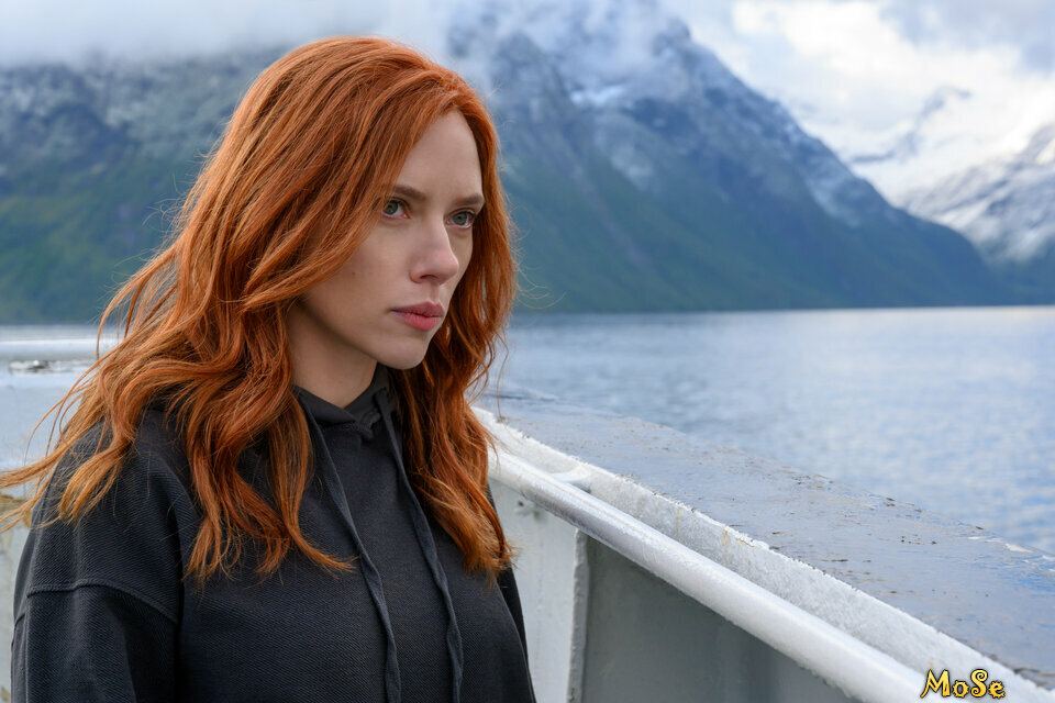 В июле 2021 года Йоханссон подала иск к компании Walt Disney в Верховный суд Лос-Анджелеса, утверждая, что одновременный выпуск фильма на Disney+ нарушил условие её контракта о том, что фильм получит традиционный прокат в кинотеатрах. В иске говорилось, что одновременный релиз освободил Disney от выплаты «очень больших бонусов от кассовых сборов», на которые, как сообщается, имела бы право Йоханссон. Согласно «The Wall Street Journal», Йоханссон была обеспокоена возможностью выхода фильма на Disney+ ещё до выхода «Мстителей: Финал». Крис Ли из Vulture высказал мнение, что отсутствие каких-либо запланированных появлений в будущих проектах КВМ побудило Йоханссон подать иск. Disney опубликовала заявление, в котором говорится, что иск не является обоснованным, назвав его «бездушным пренебрежением к ужасающим и длительным глобальным последствиям пандемии COVID-19». Кроме того, компания заявила, что они полностью выполнили контракт Йоханссон и что выпуск фильма на Disney+ «значительно расширил возможности [Йоханссон] получить дополнительную компенсацию в дополнение к $20 миллионам, которые она получила на сегодняшний день».