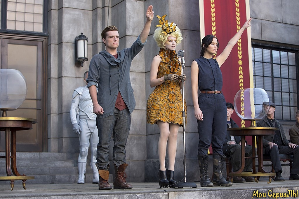 Молодые трибуты отправляются в тур по провинциям. Сладкая парочка взывает трепет в сердцах чувствительной знати. Но простые люди, осознавшие всю пропасть между ними и правящим классом, уже не позволяют кормить себя сладкой ложью. Отважившись на публичный суицид, Китнисс была заочно приговорена к смерти. Её сойка-пересмешница становится эмблемой грядущей революции.
