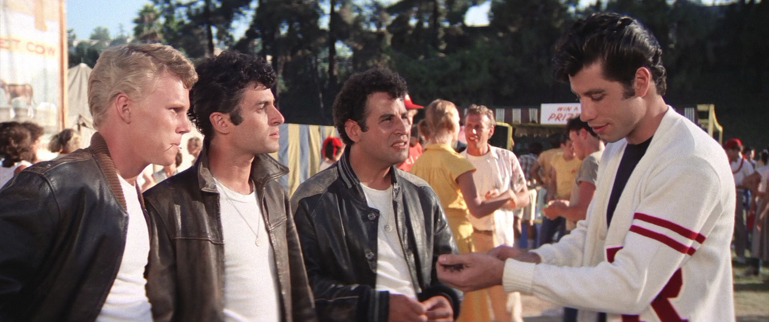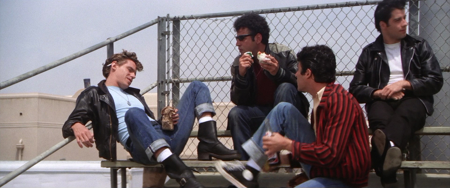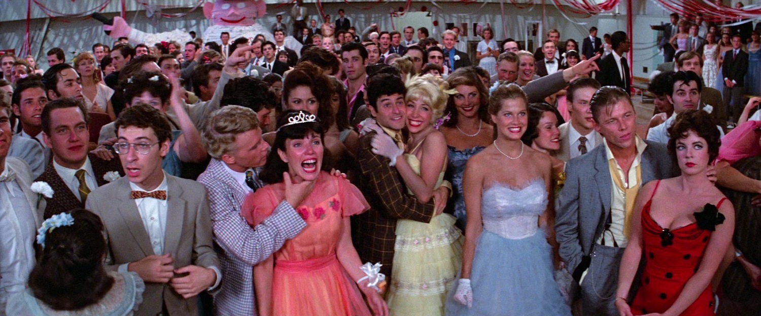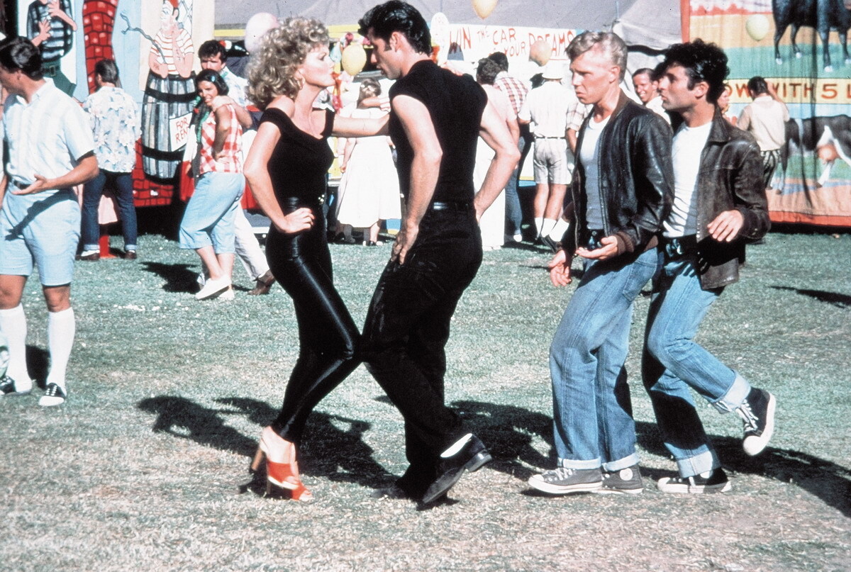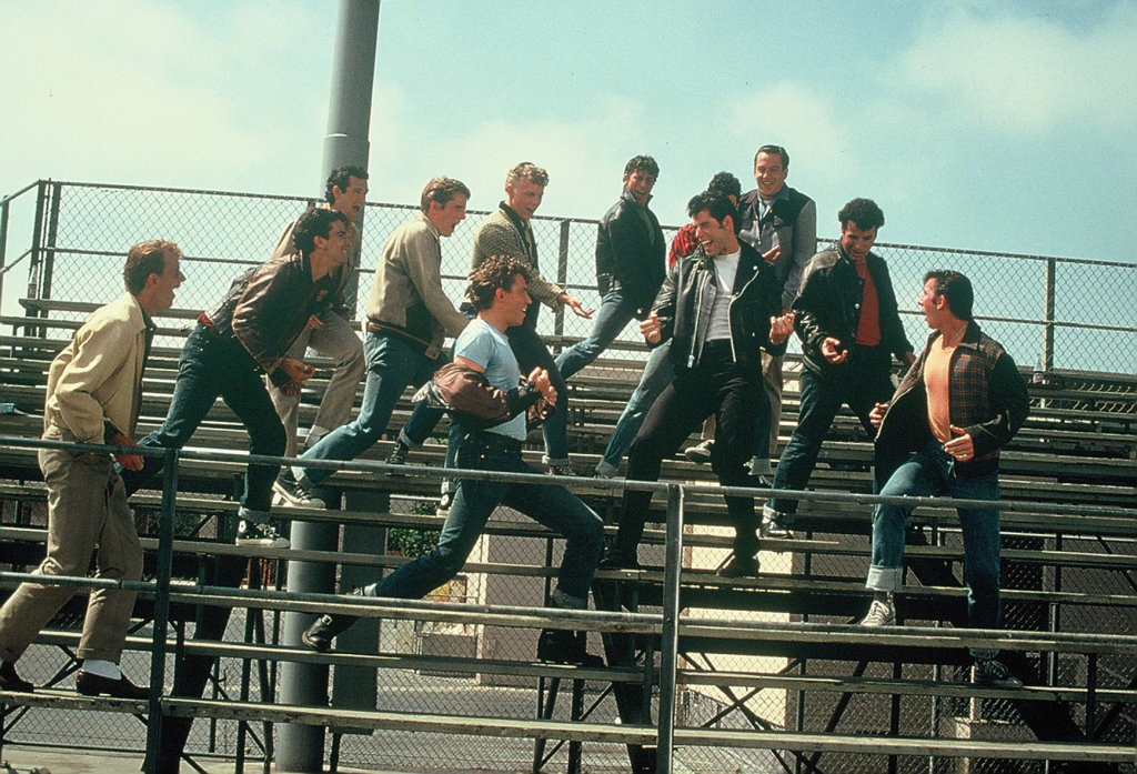 Герои Дэнни Зуко и Сэнди влюбляются, расстаются и вновь находят друг друга. В фильме показана Америка 1950-х годов, где ещё нет ни нефтяных кризисов, ни войны во Вьетнаме, ни панк-рока, преобладают длинные авто с открытым верхом, зализанные пресловутым бриолином причёски, а белые носки — вовсе не признак дурного вкуса. Всюду царит атмосфера безудержного оптимизма и благополучия. Что делать молодым людям в таких условиях? Петь, танцевать и заниматься любовью!