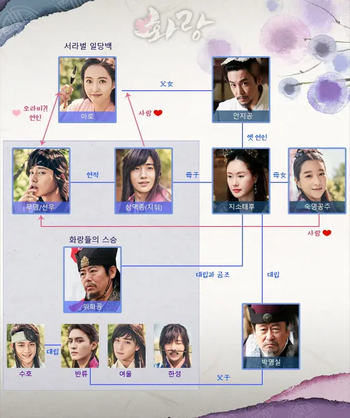 А Ро (Го Ара) обладает яркой индивидуальностью. Её родители имеют разные социальные статусы: благородного и низшего класса. Хотя девушка относится к простолюдинам, её поведение такое же уверенное и достойное, как у любого благородного человека. По сюжету она будет втянута в любовный треугольник с Му Мёном и Сам Мэк Чжоном.