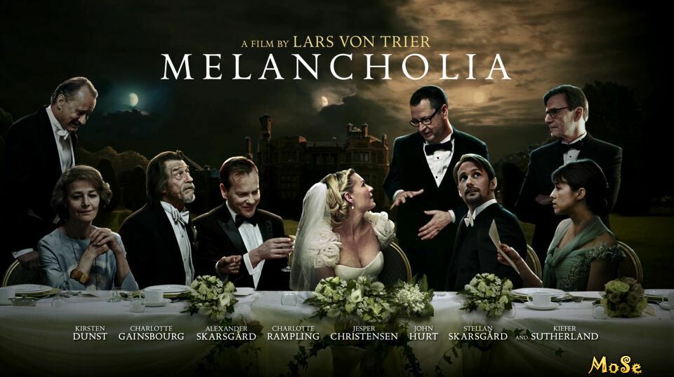 События фильма разворачиваются в дни, которые предшествуют катастрофе. Первая часть посвящена свадьбе Жюстин, которая быстро охладевает к торжеству, чем вызывает непонимание близких и гостей. Героиней второй части является Клэр, сестра Жюстин. Вначале Клэр ухаживает за впавшей в клиническую депрессию Жюстин и одновременно страшится сообщений о приближении таинственной планеты Меланхолия. Постепенно, по мере приближения планеты, Жюстин и Клэр меняются ролями. Теперь паникующая Клэр нуждается в заботе. В отчаянии она с сестрой и сыном готовится принять неизбежное.