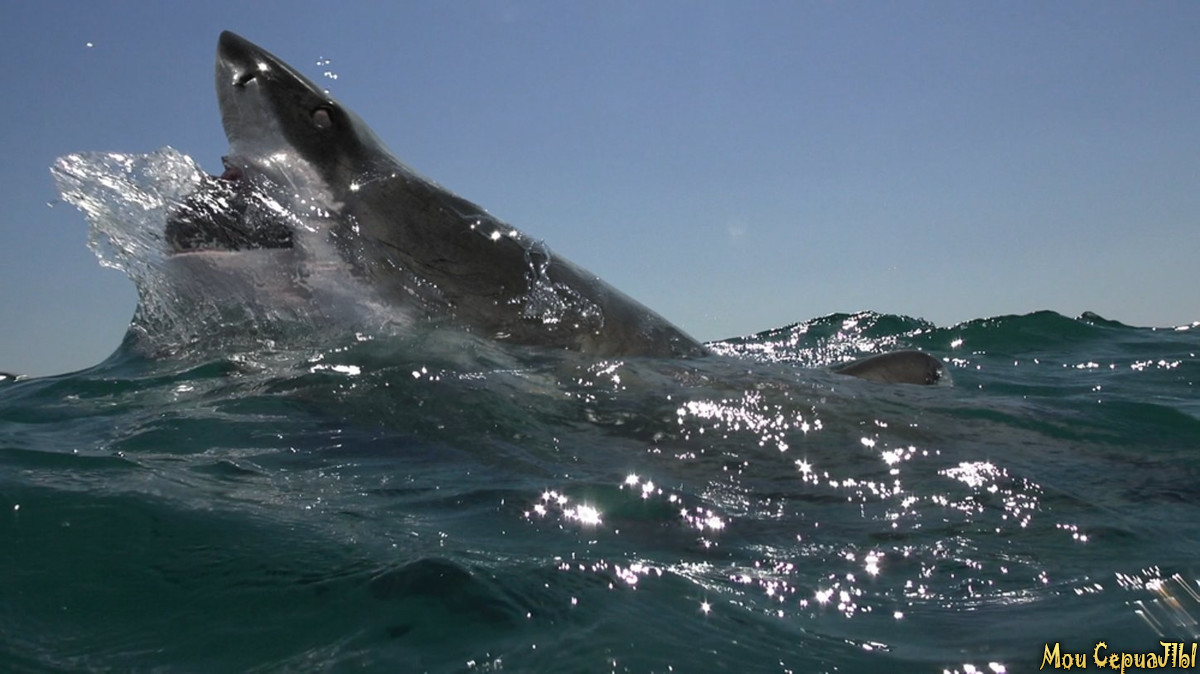 Студенты в открытом море пытаются спастись от белой акулы.