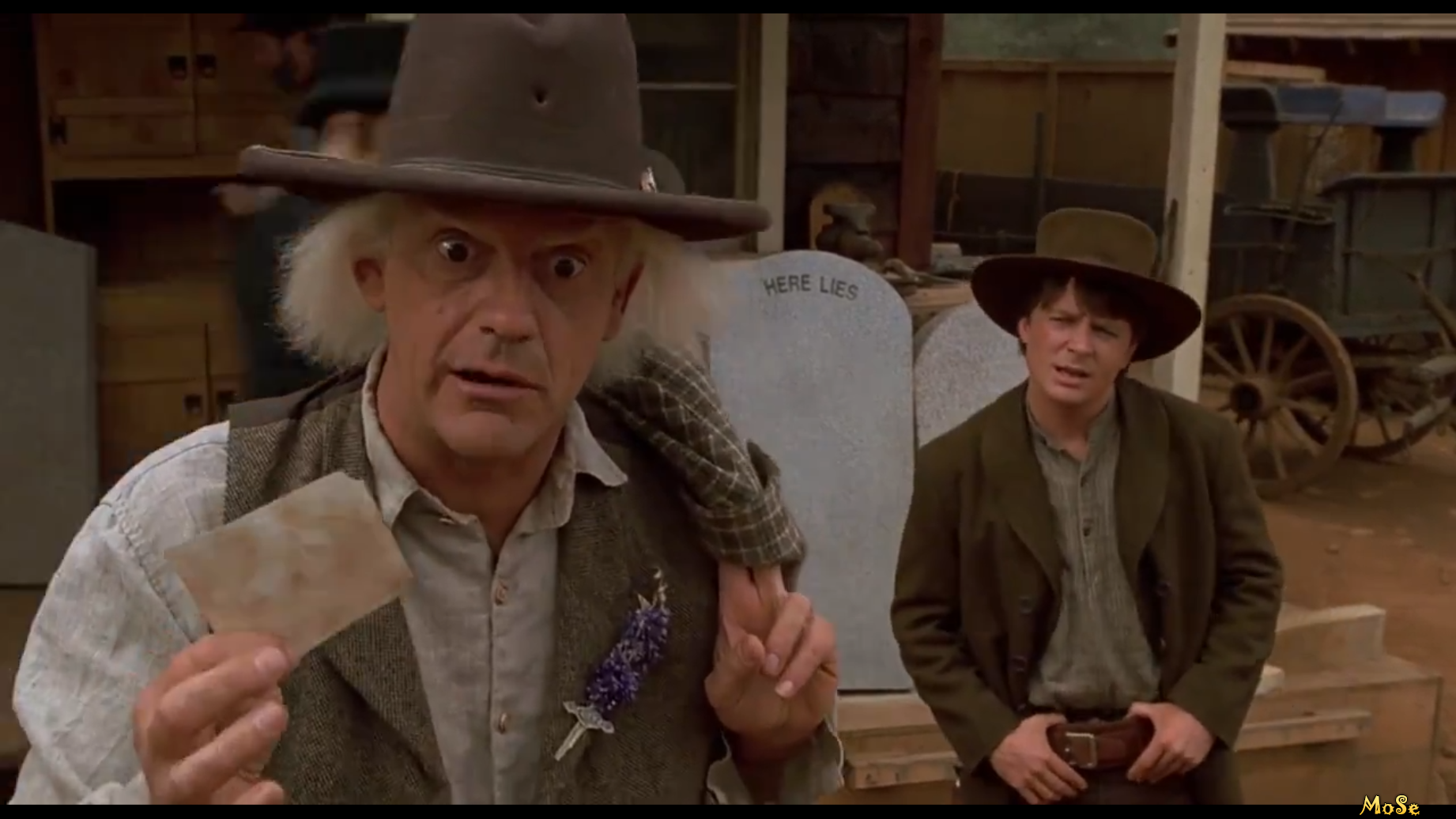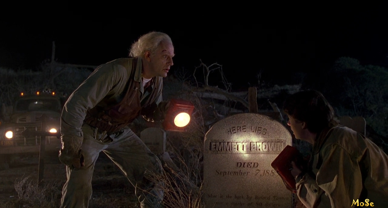 Док и Марти направляются в шахту, где по указаниям из письма должна находиться машина времени, захороненная ещё в 1885 году. По дороге они обнаруживают на кладбище надгробную плиту, которая повергает Марти в ужас...