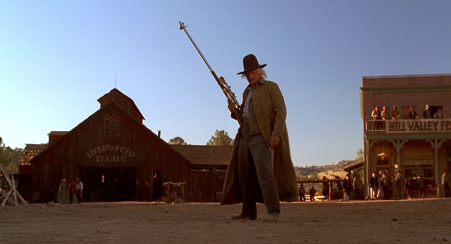 Прибыв в прошлое на дикий запад, Марти попадает в несколько передряг, знакомится со своими предками и вступает в перепалку с бандой «Бешеного Пса». Макфлая от банды спасает Док, попутно начиная череду событий, которые через несколько дней должны привести к его гибели.